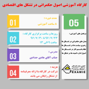روزها و ساعت برگزاری کارگاه : 23/07/96- 30/07/96 ساعت 9 الی 13