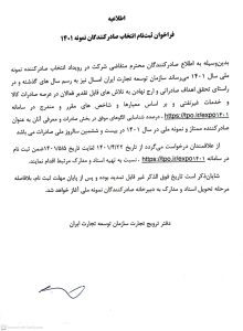 فراخوان ثبت نام متقاضیان شرکت در فرآیند انتخاب صادرکنندگان نمونه ملیصادرکنندگان نمونه ملی راخوان ثبت نام متقاضیان شرکت در فرآیند انتخاب صادرکنند ملی صادرکنندگان نمونه ملی