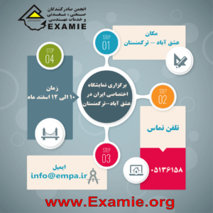 برگزاری نمایشگاه اختصاصی ایران در عشق آباد-ترکمنستان از تاریخ 10 الی 12 اسفند ماه سال جاری جهت اطلاع رسانی به همراه نامه و فایل های پیوست در فایل زیر می باشد :